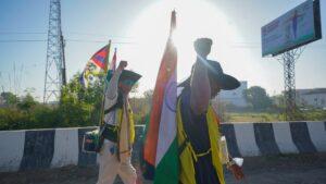 The march began at 4:00 AM with prayers and a briefing. along the way at 9:00 am, Tibetan activist Jamyang la visited the marchers from Dehradun, expressing gratitude for their dedication and determination toward the national struggle.