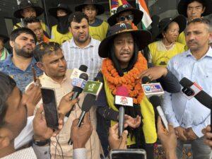 The marchers were warmly welcomed with garlands and flower petals. The Tibetan Youth Congress President addressed the media, and due to intense heat, the marchers rested early.
