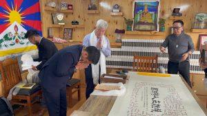 On the table were displayed portraits and memorabilia of the first Tibetan self-immolator, Martyr Thupten Ngodup, and Martyr Jamphel Yeshi, along with the calligraphy artwork symbolizing the sacrifices of all Tibetan martyrs. The TYC Vice President expressed deep gratitude, stating, “We held a prayer session for four of our Tibetan martyrs at the same table where your calligraphy was placed a work representing all Tibetan martyrs. In that moment, we felt the presence of their noble souls among us. With a heavy heart, I thank you for creating this profound moment.”